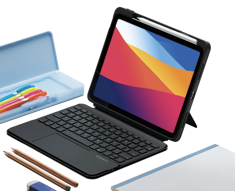 頻度高くに長期的にiPadを使用する学生生活だからこそ、ケースとキーボードの表面には長く品質を保ったまま使える高耐久素材を採用。